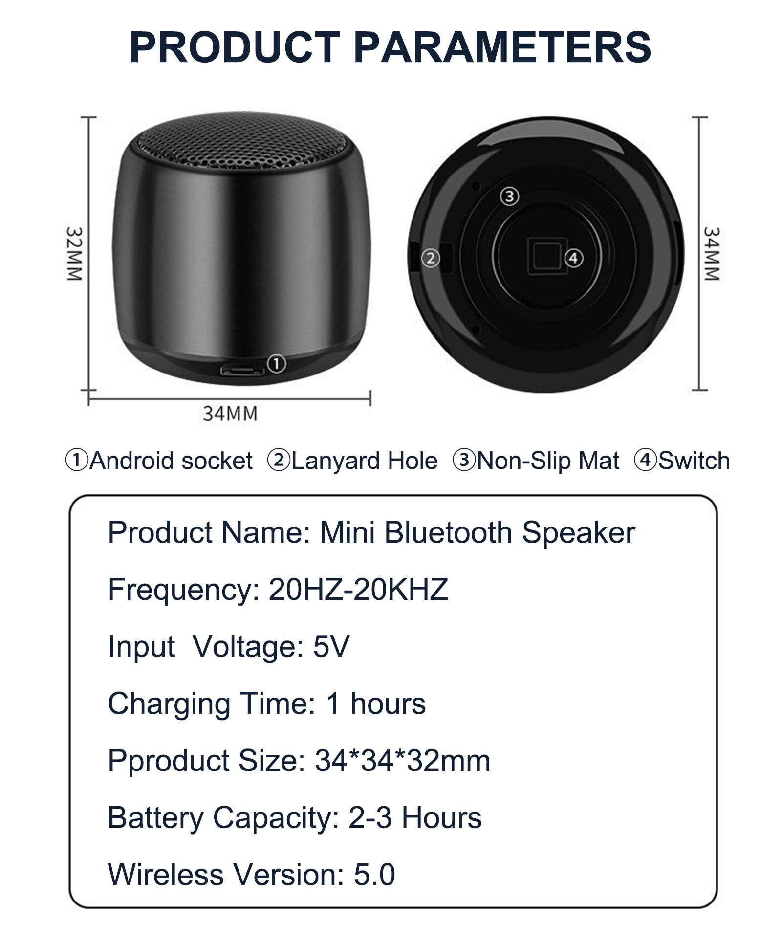 Mini sans fil BT 5.0 haut-parleur